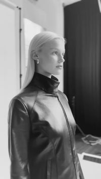 Slick and refined style is the Luna jacket. Crafted from premium Italian Lambskin Leather that drapes on the body and manoeuvres in style. On an ever so slight angled front zip closure, cross-over stud closure collar and elegantly positioned front angled jet pockets. Luna has a slight scooped back that has a wrap around all body waist band. Large leather panelled yokes throughout that sit on the wearer perfectly. The Luna has a specifically crafted fit - tapered around the bustline and slightly more relaxed towards the hip and hem, allowing for layering for those chilly days and being versatile and cut with extra sleeve room as well as trans-seasonal with a tee in the spring/summer months.