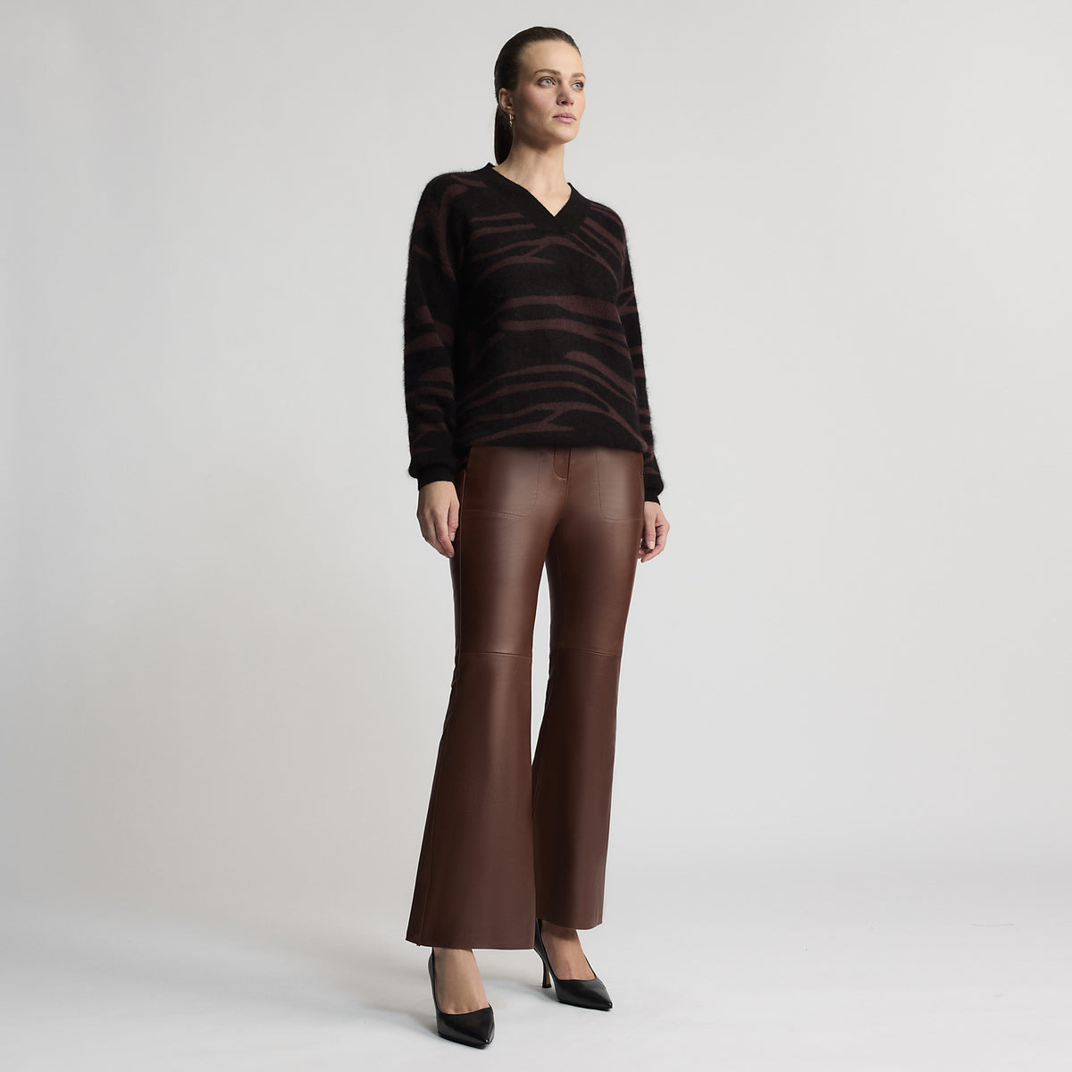 Light weight, sumptuous and soft, colour blocked and cosy - sums up the Positano knit. Made in a striking jacquard knit texture from RAW by RAW’s stunning Raccoon blend yarn, the Positano is a loose cut, high collared V-neck knit top. Consisting of neutral colours to be timeless, the construction and design make it striking and unique. With the slight drop-shoulder relaxed cut, perfect for travel and layering up. Smooth and soft beautiful to wear on its own directly on skin.